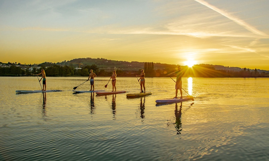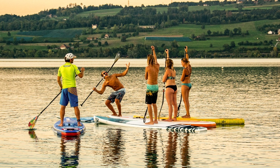 Der Sempachersee eignet sich hervorragend für diese Trendsportart, da es auf dem See nur wenige Boote gibt, und man den ganzen See für eine SUP Tour nutzen kann. Das Center liegt direkt am See, vis à vis vom Bahnhof Nottwil. Wir verfügen in unserer Station total 40 SUPs von Naish, Mistral, Starboard und Fanatic. Bei kühleren Temperaturen erhält ihr einen Neoprenanzug. Auch die obligatorische Schwimmweste ist im Mietpreis inbegriffen. Reservationen werden erst ab Gruppen von mind. 8 Personen entgegengenommen.
